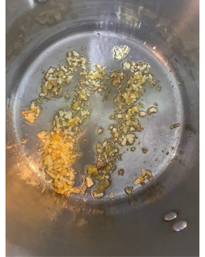• オリーブオイル、ショウガ、ニンニクを鍋に入れて香りが出るまで炒める